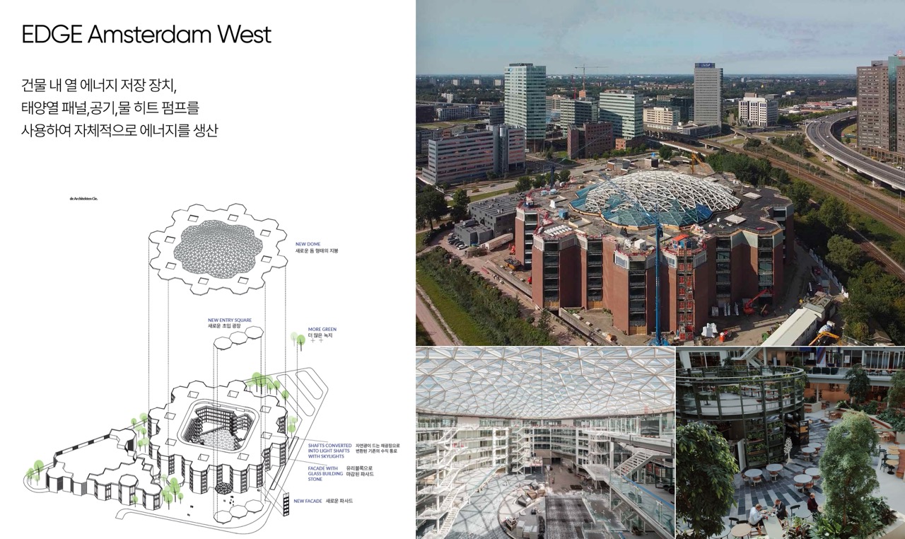 특히 자재, 부품, 공간 활용에서 경제적 가치도 높이며 유연성과 지속가능성을 극대화하려는 혁신적 시도들은 특히 인상적이다. 일례로 1970년대 최초로 설계된 엣지 암스테르담 웨스트는 순환건축 개념을 적용해 지난 2021년 리노베이션한 프로젝트로, 업무 생산성과 직접 관련이 있는 건물의 자연채광 극대화, 에너지 효율 개선, 건강과 지속가능성 강조 등 오피스 건물의 자산 가치를 높일 수 있는 기술적인 부분을 소개함과 동시에, 이를 통해 건물 가치가 6.5배 상승했다는 결괏값을 함께 제시하며 순환건축 개념의 경제적 선순환과 지속가능의 당위성을 강조한다. 씨아이이는 ‘지속해서 순환성에 대한 인식과 정보를 공유하고, 이 지식을 최대한 많이 확산시키는 것이 순환성을 실천하는 첫 단계이며 가장 중요한 미션’ 이라고 밝히며, 순환건축에 대한 경험과 지식을 한국의 건축 분야 및 일반 대중과 공유할 수 있길 바란다고 전했다.